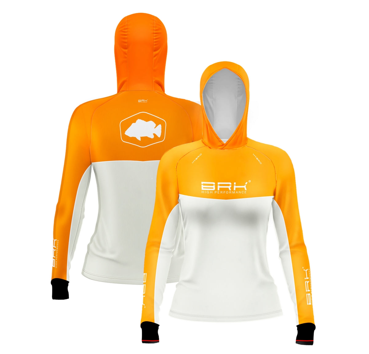 Camisa de Pesca Feminina Brk com Capuz Hybrid Laranja com Proteção Solar UV50+ Envio Imediato